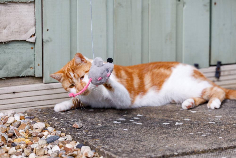 This plush mouse is filled with catnip and has a cute rope tail for your cat to chase. Attached to a bouncy cord it will stimulate your cat's natural playful instincts.